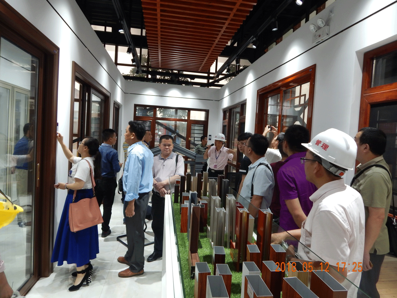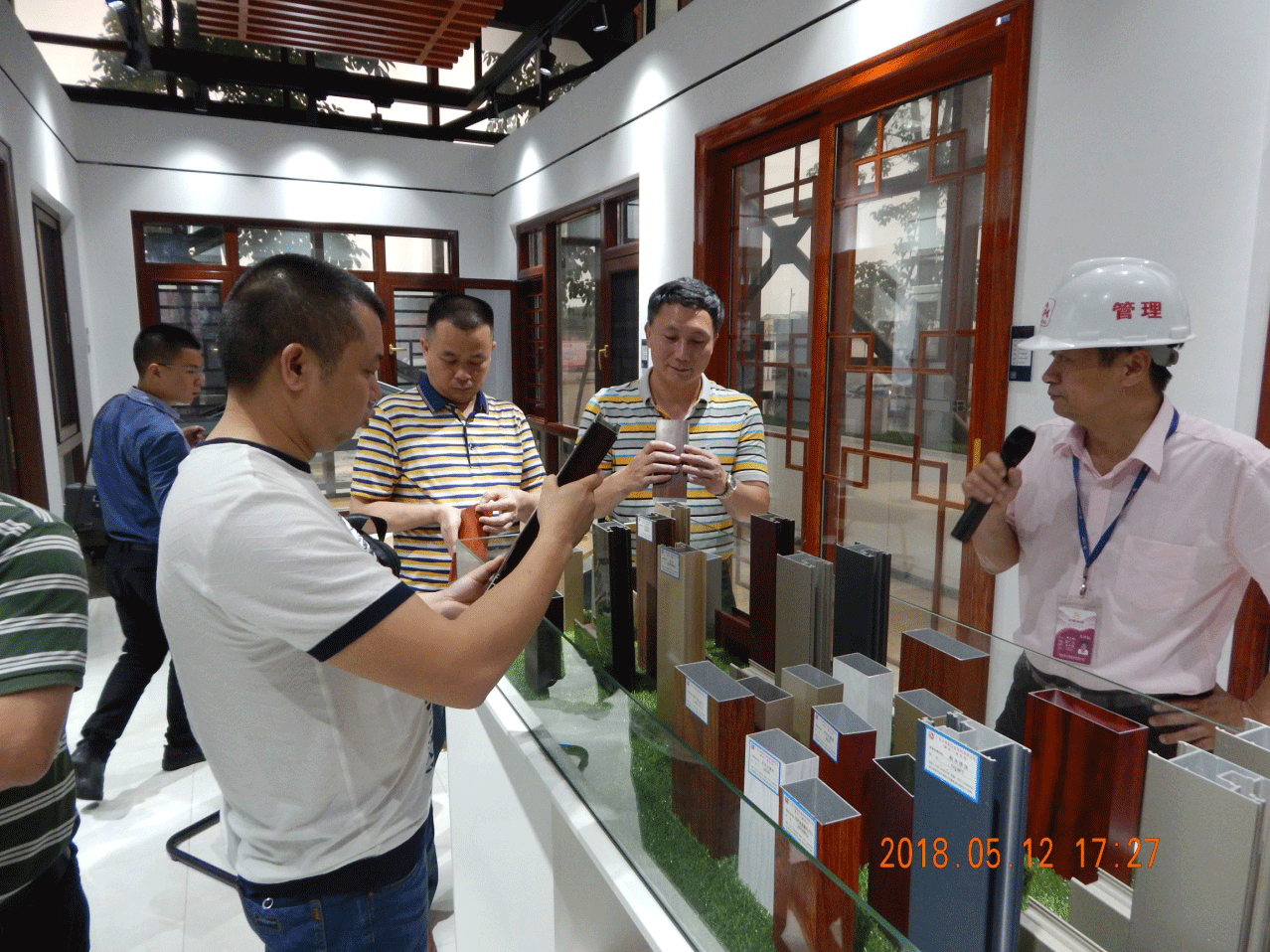 公司几位高管首先带领考察团参观公司产品展厅。公司质量总监黄总向考察团介绍公司的产品:有基材、阳极氧化型材、电泳涂漆型材、粉末喷涂型材、木纹型材、氟碳喷涂型材、隔热型材、工业型材等,产品广泛应用于建筑工程、交通运输、家居办公、电子产品等行业,考察团对我司的产品产生浓厚的兴趣和赞口不绝,纷纷拿出手机拍照留影。