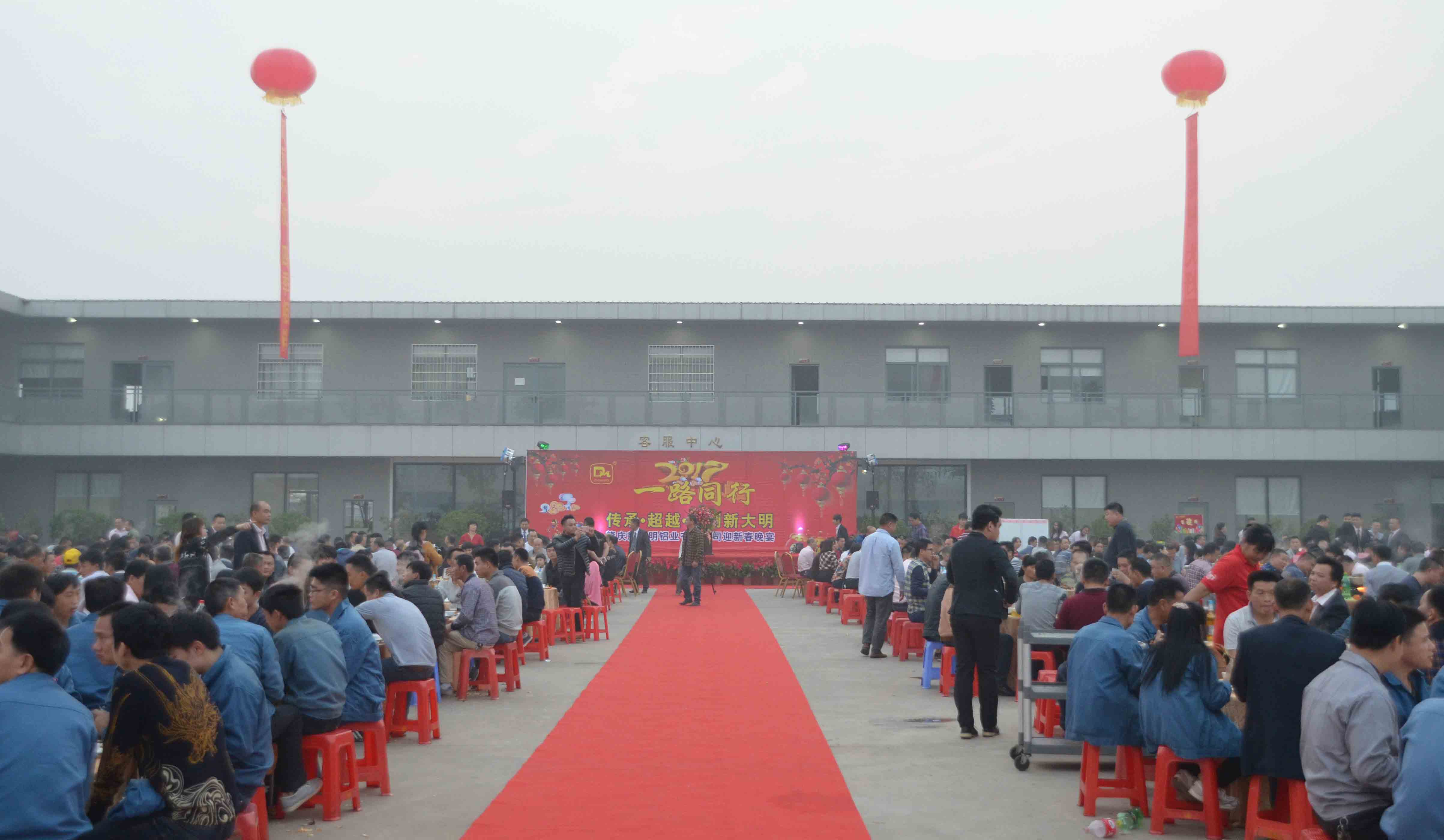 辞旧迎新展宏图,再创辉煌新大明。1月5日晚,新大明铝业公司举办以“2017一路同行,传承,超越,共创新大明”为主题的迎新春联欢晚会。晚宴设于肇庆新大明铝业有限公司厂区内,席开100余桌,政府领导、银行代表、供应商代表、经销商代表、公司董事会成员以及公司全体员工共1000余人盛装出席,举杯欢庆,共同见证这场年度盛宴。