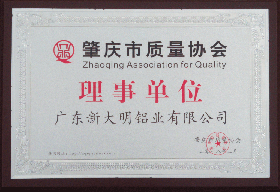 肇庆市质量协会理事单位证书
