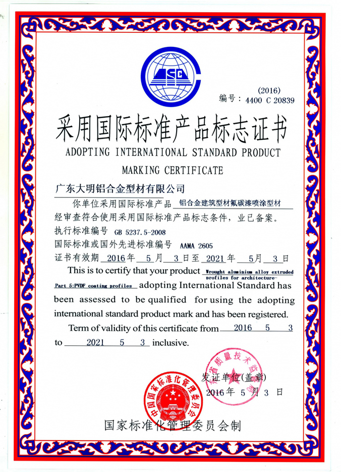 采标国际标准产品标志证书-氟碳