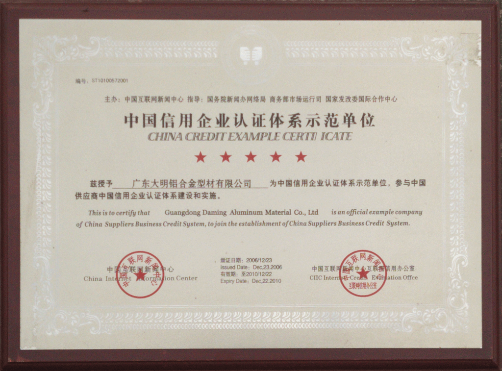 中国信用企业认证体系示范单位