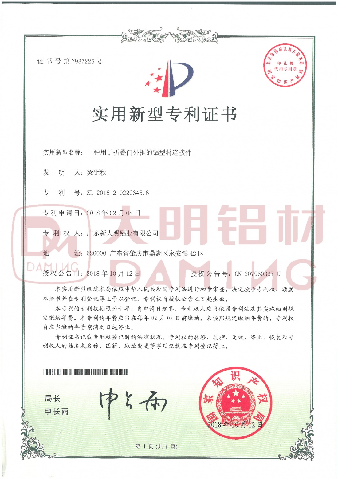 实用新型专利证书
