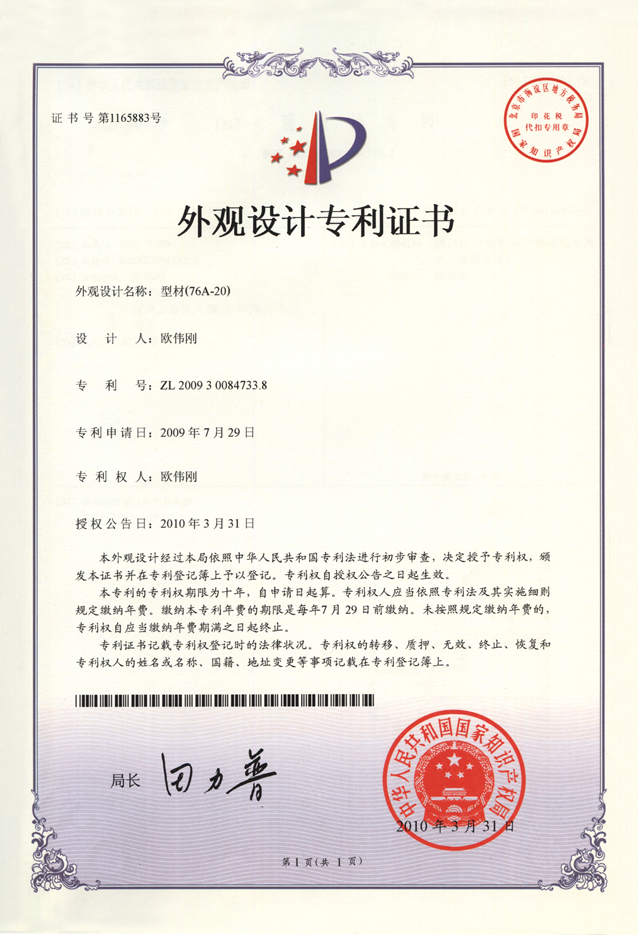 外观设计专利证书