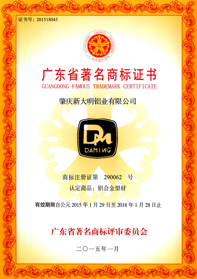 广东省著名商标证书