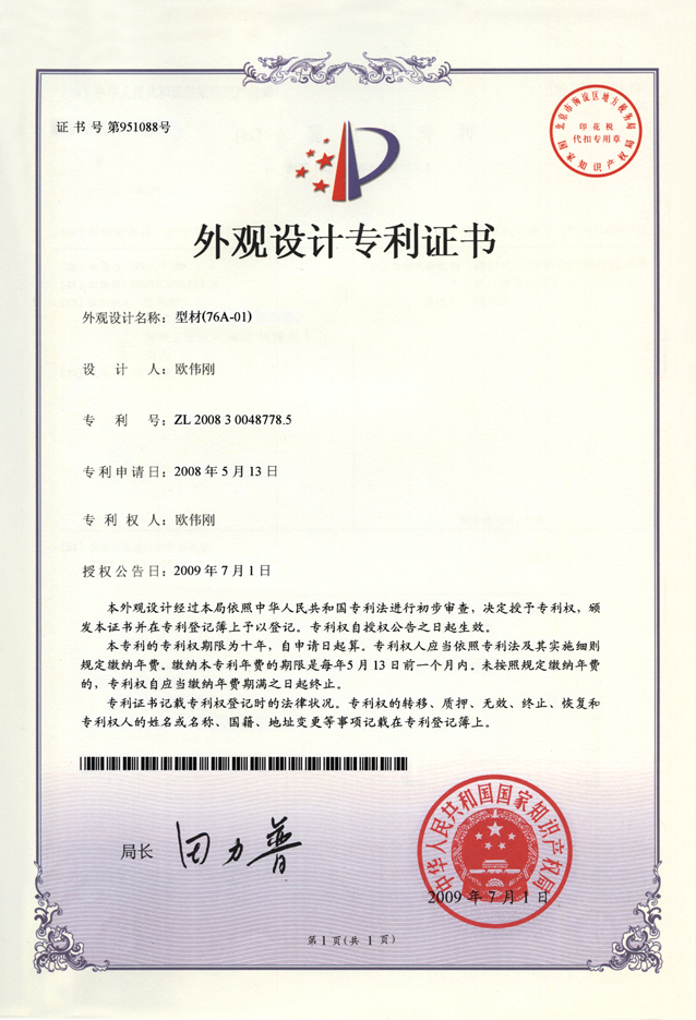 外观设计专利证书