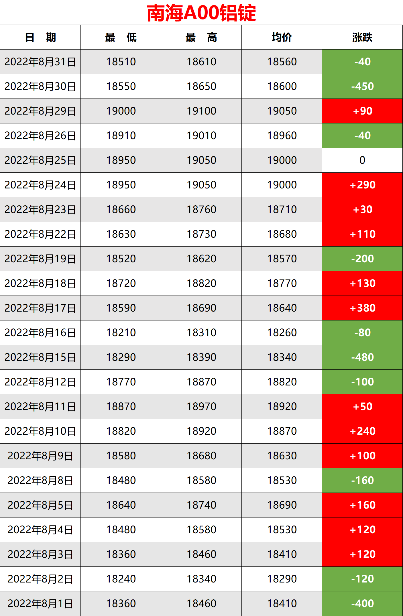 2022年8月铝价查询